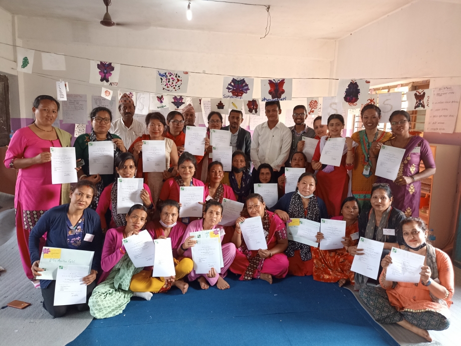 [email protected]"We learnt about low cost and no cost in a practical way. We didn't have proper knowledge of how to use locally available resources but through this training we now know even bottle caps can be used as teaching material in preschool." - Dev Kumari Bhattarai "After taking this training, it became clear to me about how to do activities in preschool. we practically learnt how to learn through play rather than teaching through memorization only. Many of the things we learnt might be common knowledge in urban area but most of the basic things we learnt here were new to me." - Anita Giri